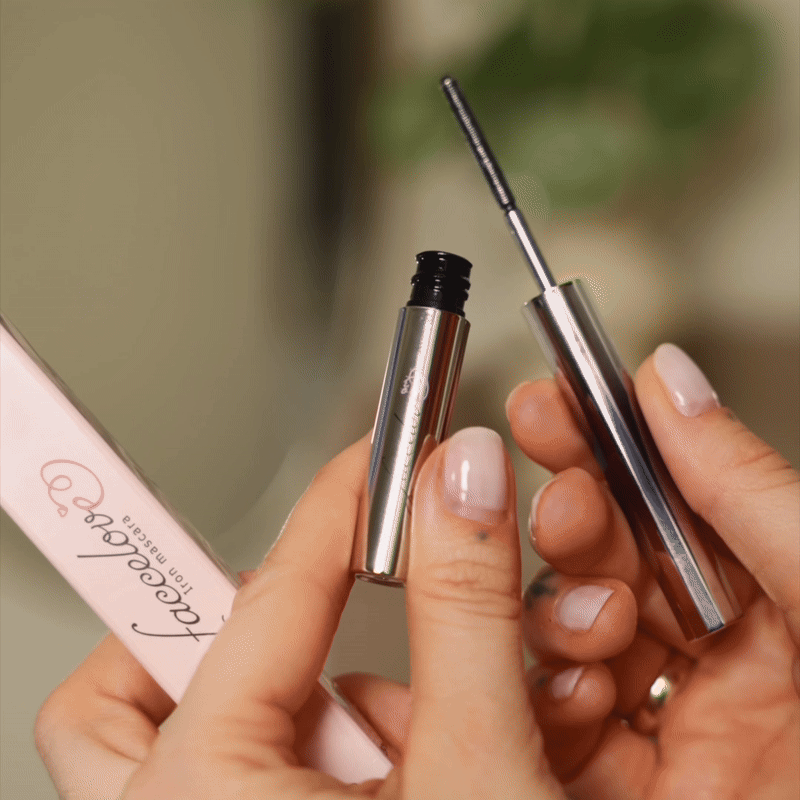 IronEye™ Mascara features a hygienic metal brush and a nourishing formula that hydrates, lengthens, and strengthens lashes. Hypoallergenic, vegan, and clump-free, it ensures stunning, long-lasting results.